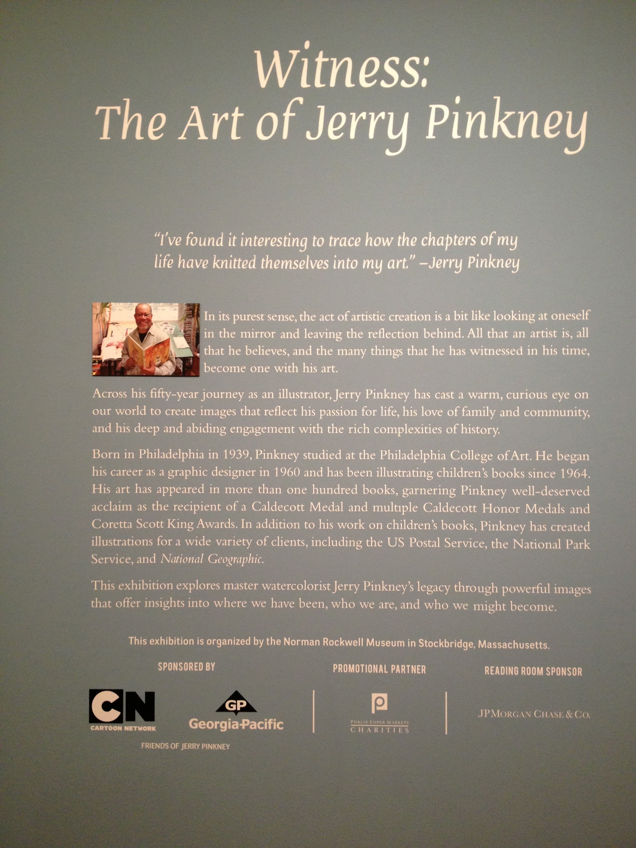 Witness: The Art of Jerry Pinkney, organized by the Norman Rockwell Museum in Stockbridge, Massachusetts, touches on themes such as the African-American experience, the wonders of classic literature and the wisdom in well-loved folk tales. The works in the exhibition celebrate small, extraordinary moments, as well as significant historical events, reflecting the artist’s belief in the transformative power of visual storytelling.