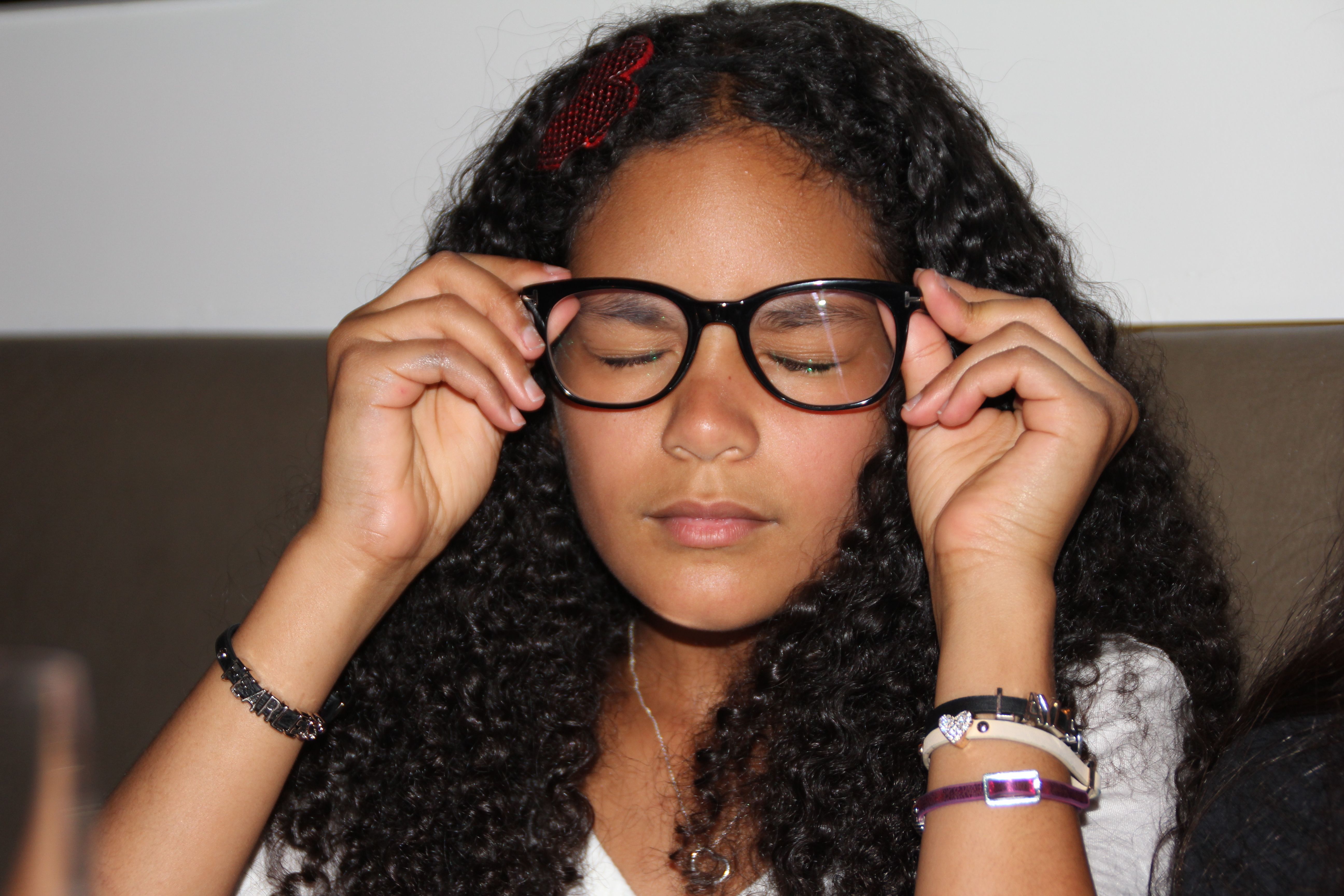 Trying on glasses