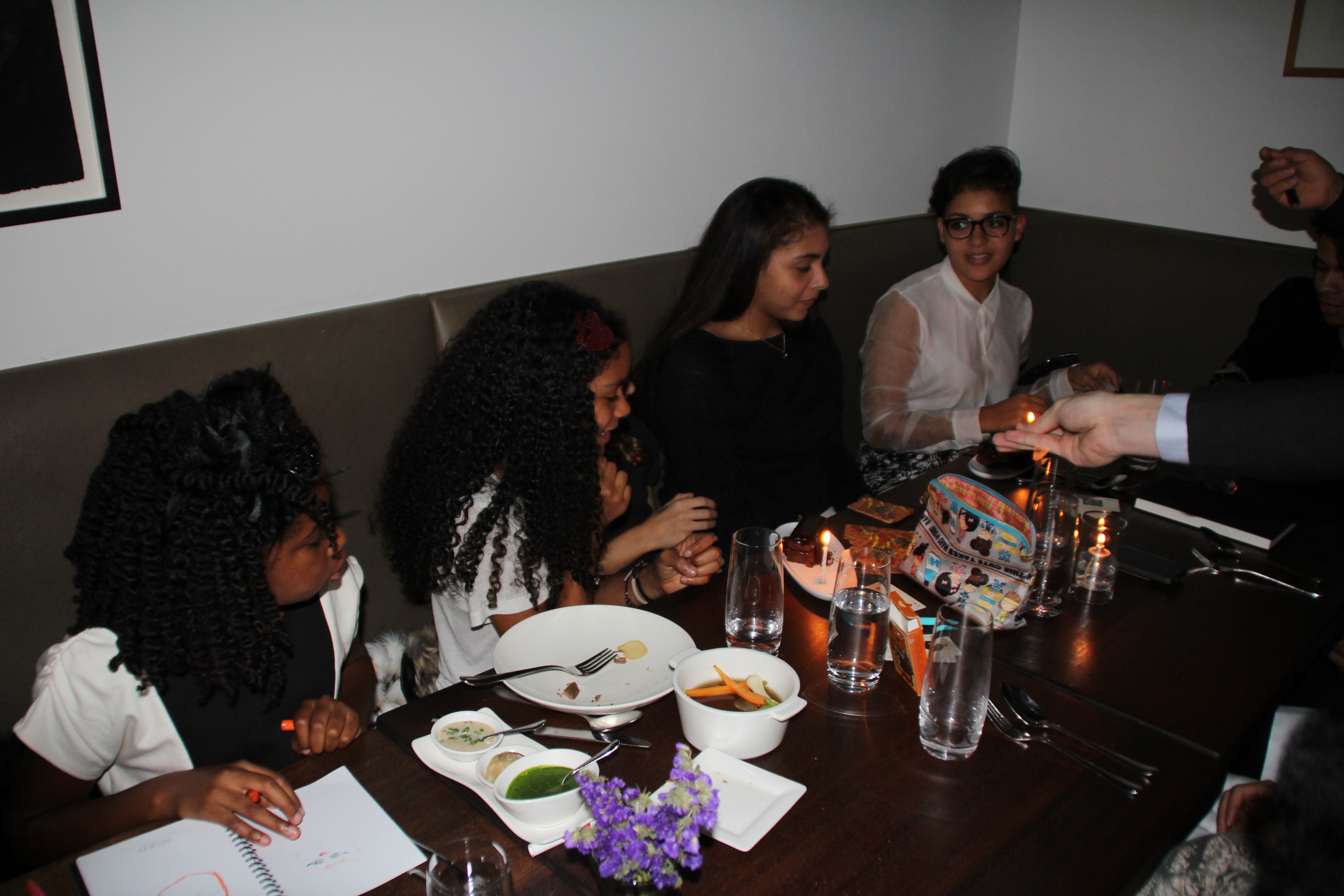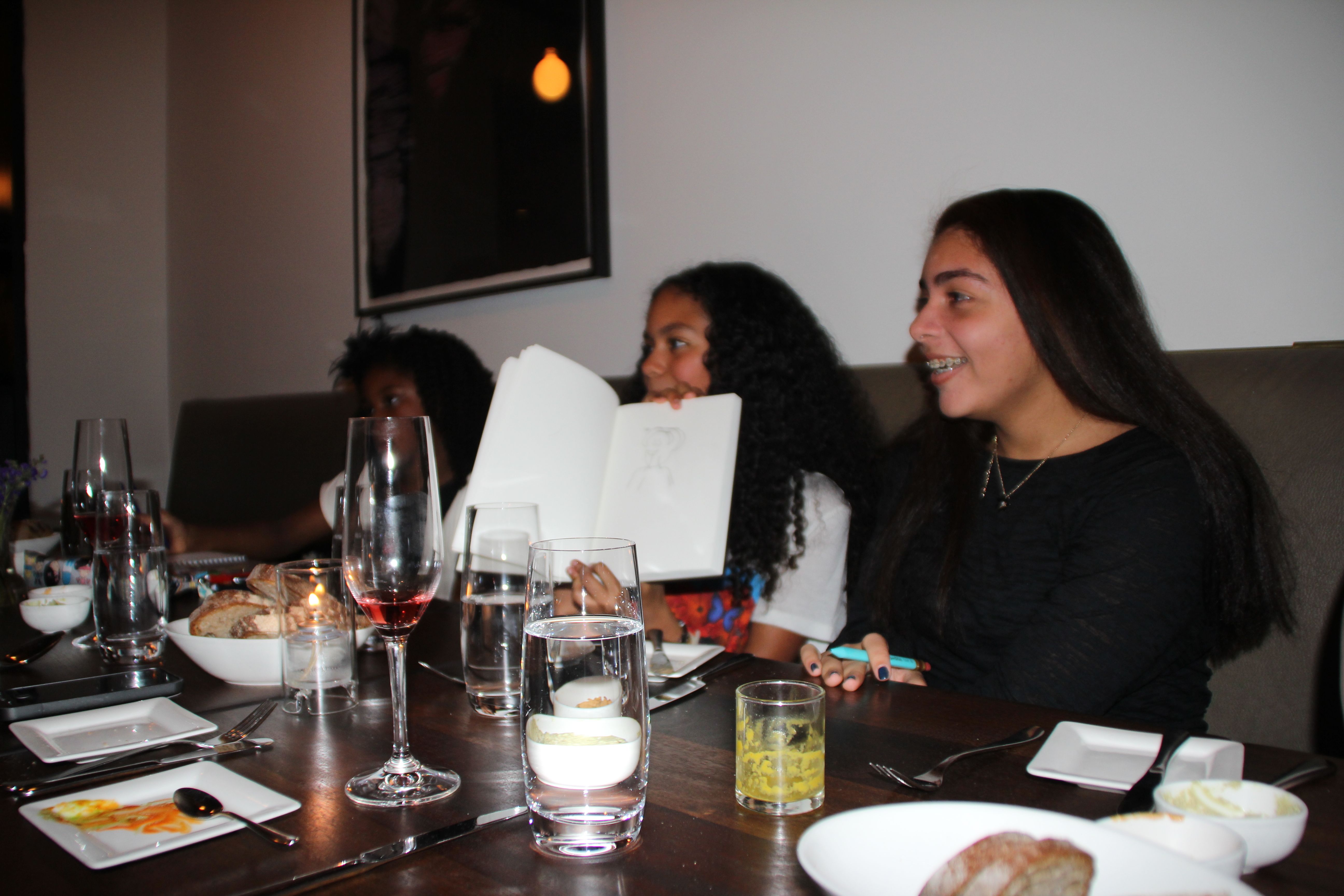 The girls sharing dessert