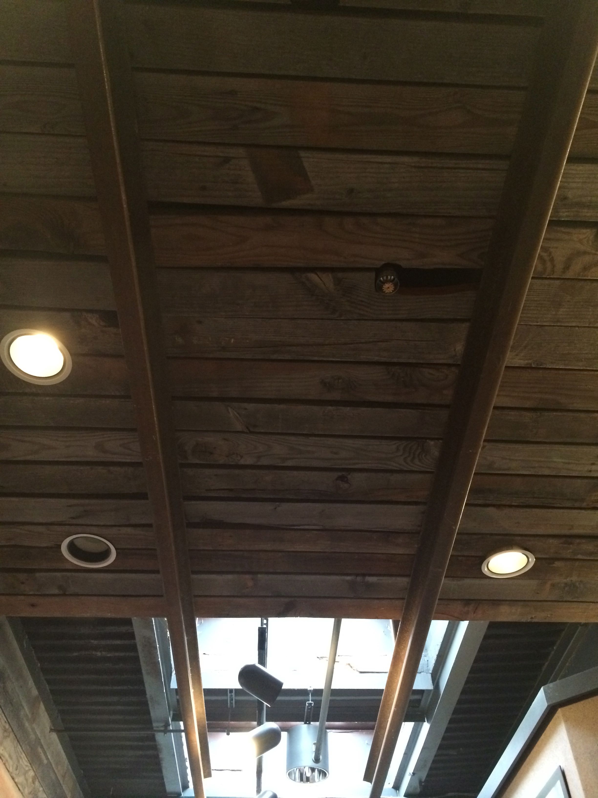 Text detailing railroad tracks attached to the ceiling