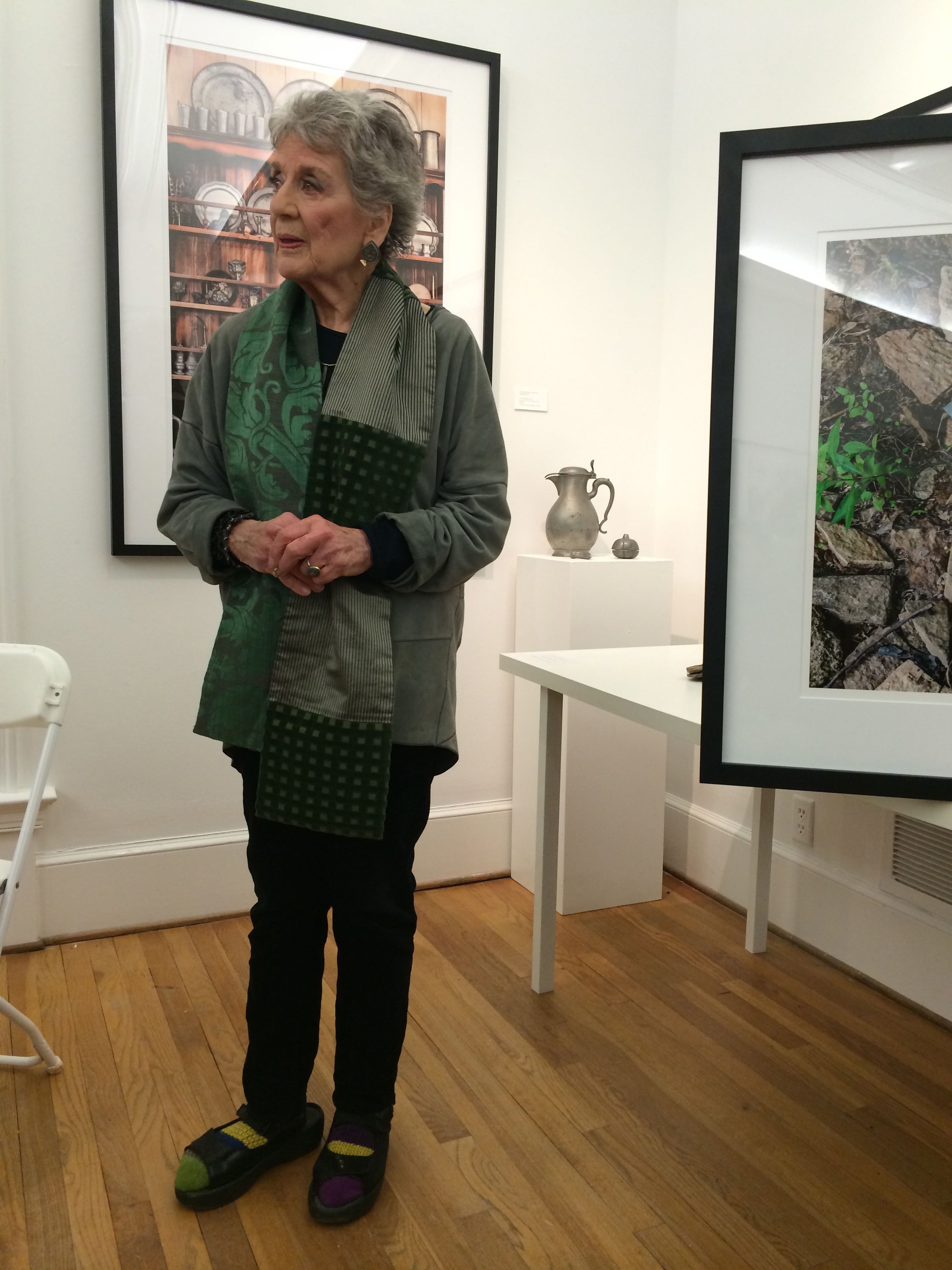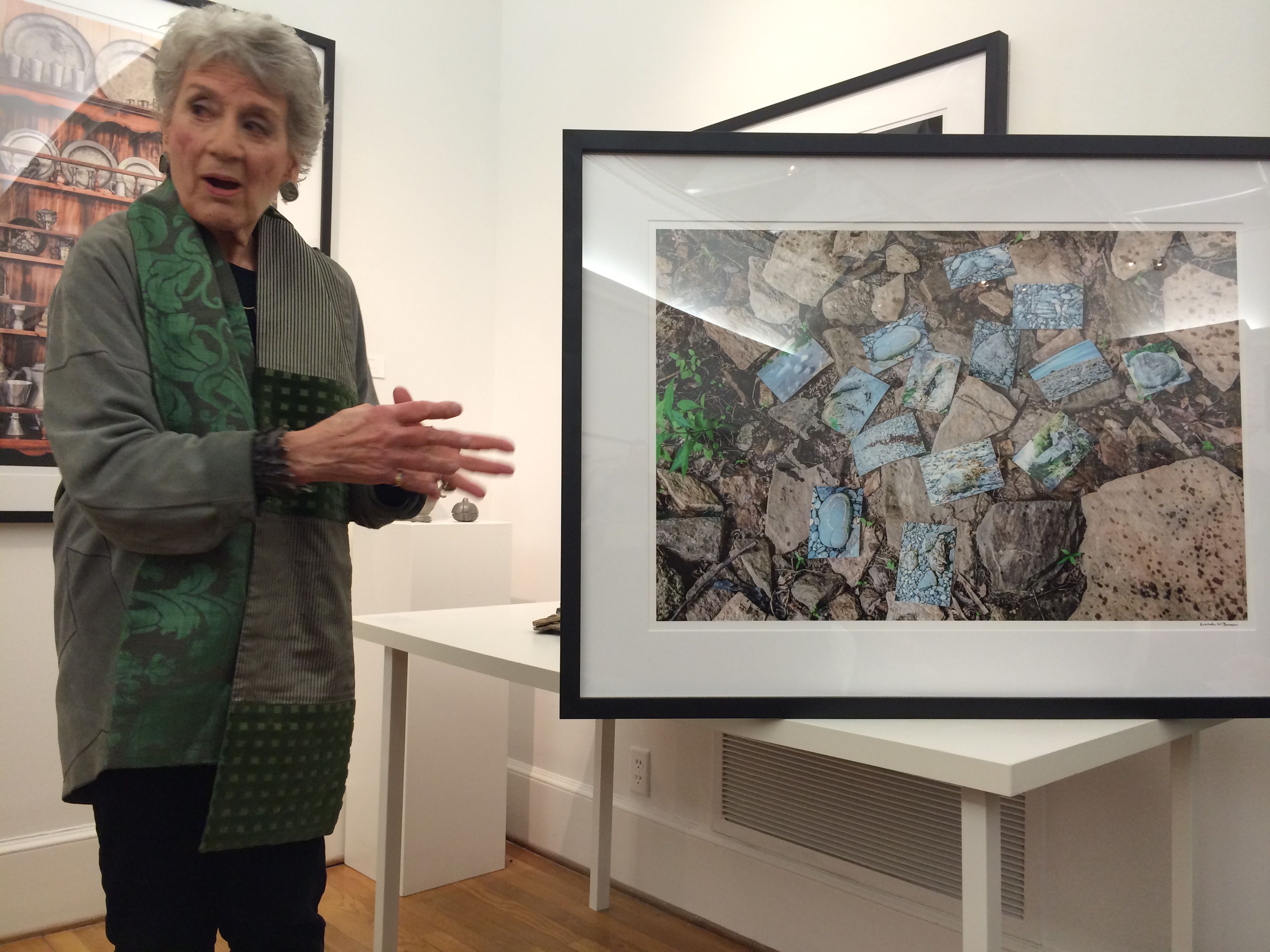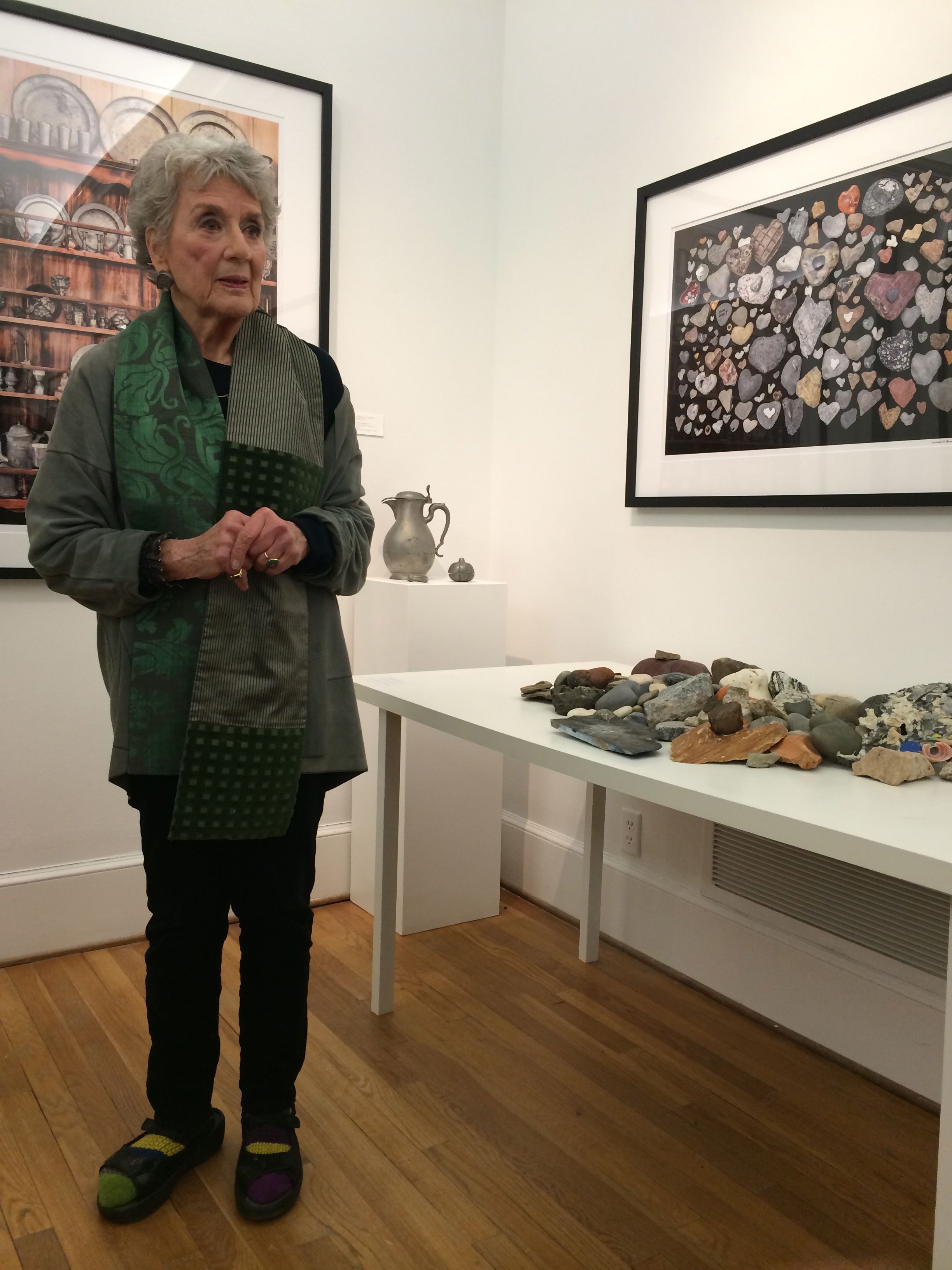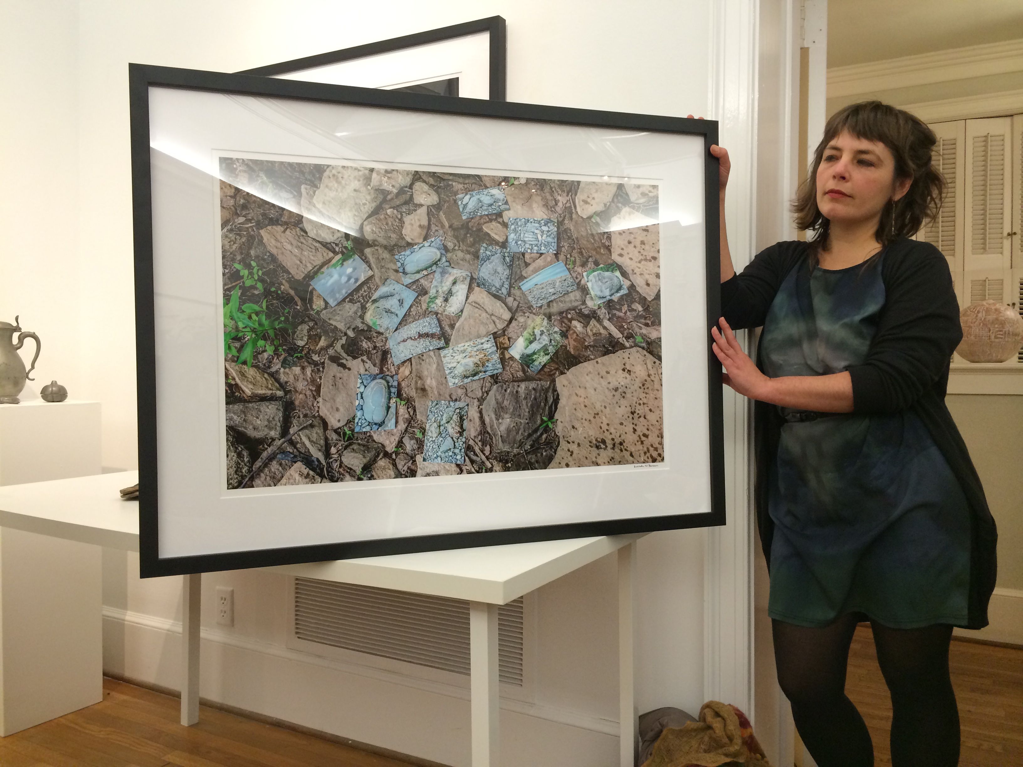 Represented in this exhibition are images of a broad range of her many fascinating accumulations. They vary from such common items as Coca Cola memorabilia, stamps, and old coins to more unusual collections of heart-shaped rocks, cow figurines, old locks and even chanterelles (that she collected, photographed and consumed the same day). The most interesting photographs, however, expose a more distinctive and playful side of her collecting activities. Included among this group are images of carefully arranged detritus accumulated while on the island of Kauai, a grouping of individual tree images she had previously photographed then re-shot as a single image, and vintage clothing from her closet modeled by Violet Chachki, a famous Atlanta drag queen.