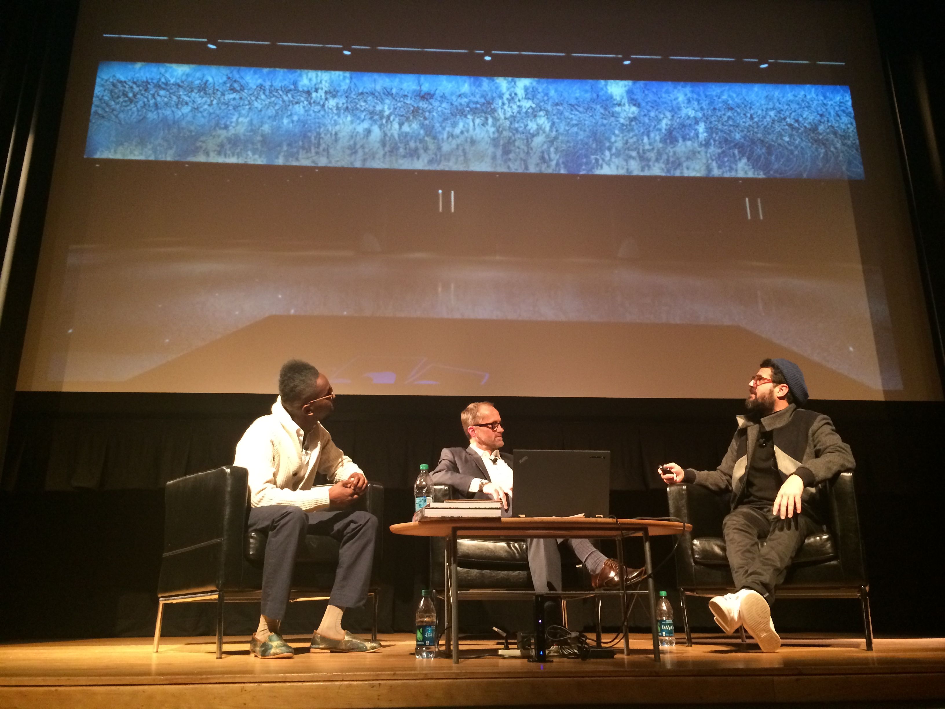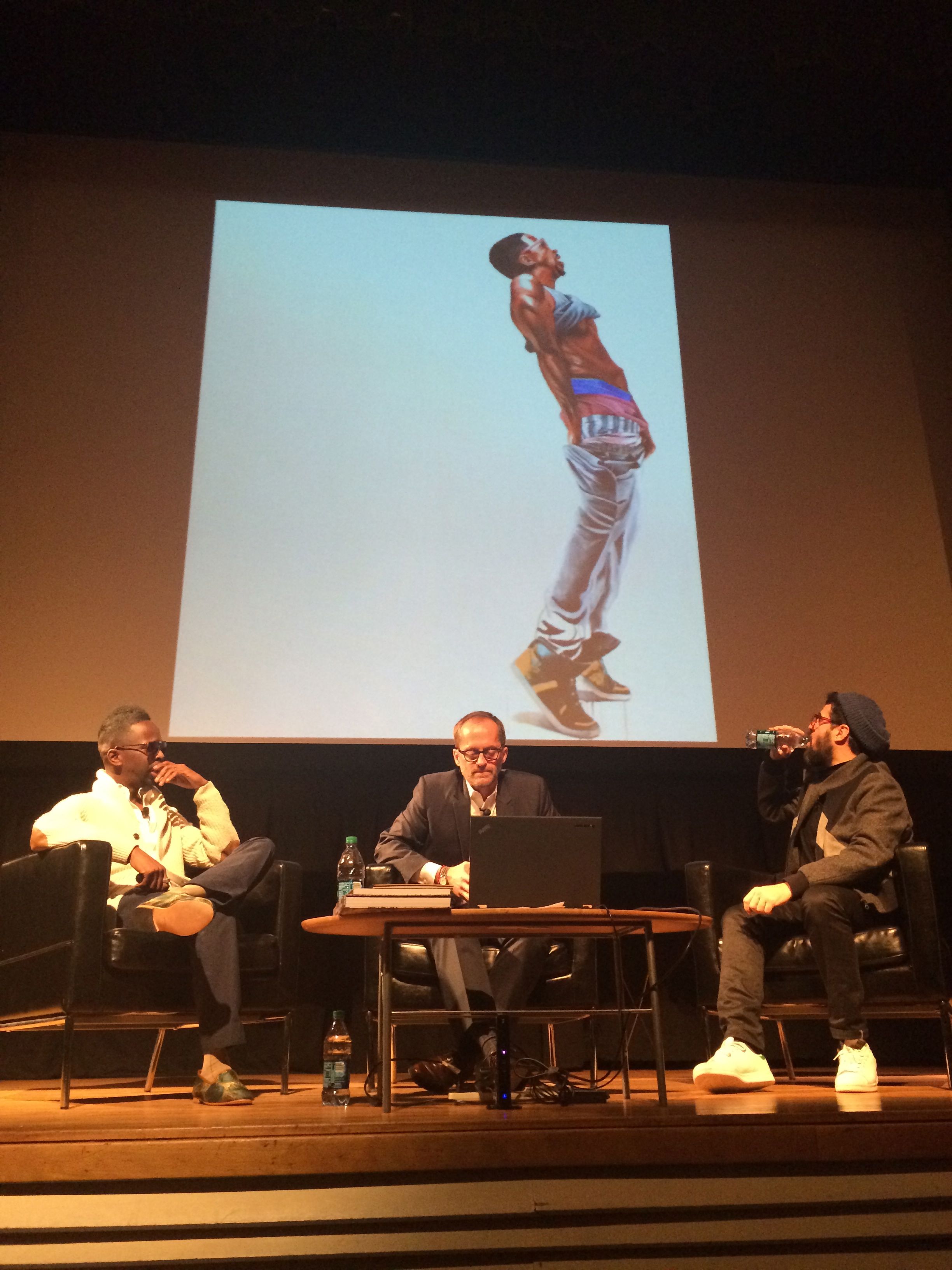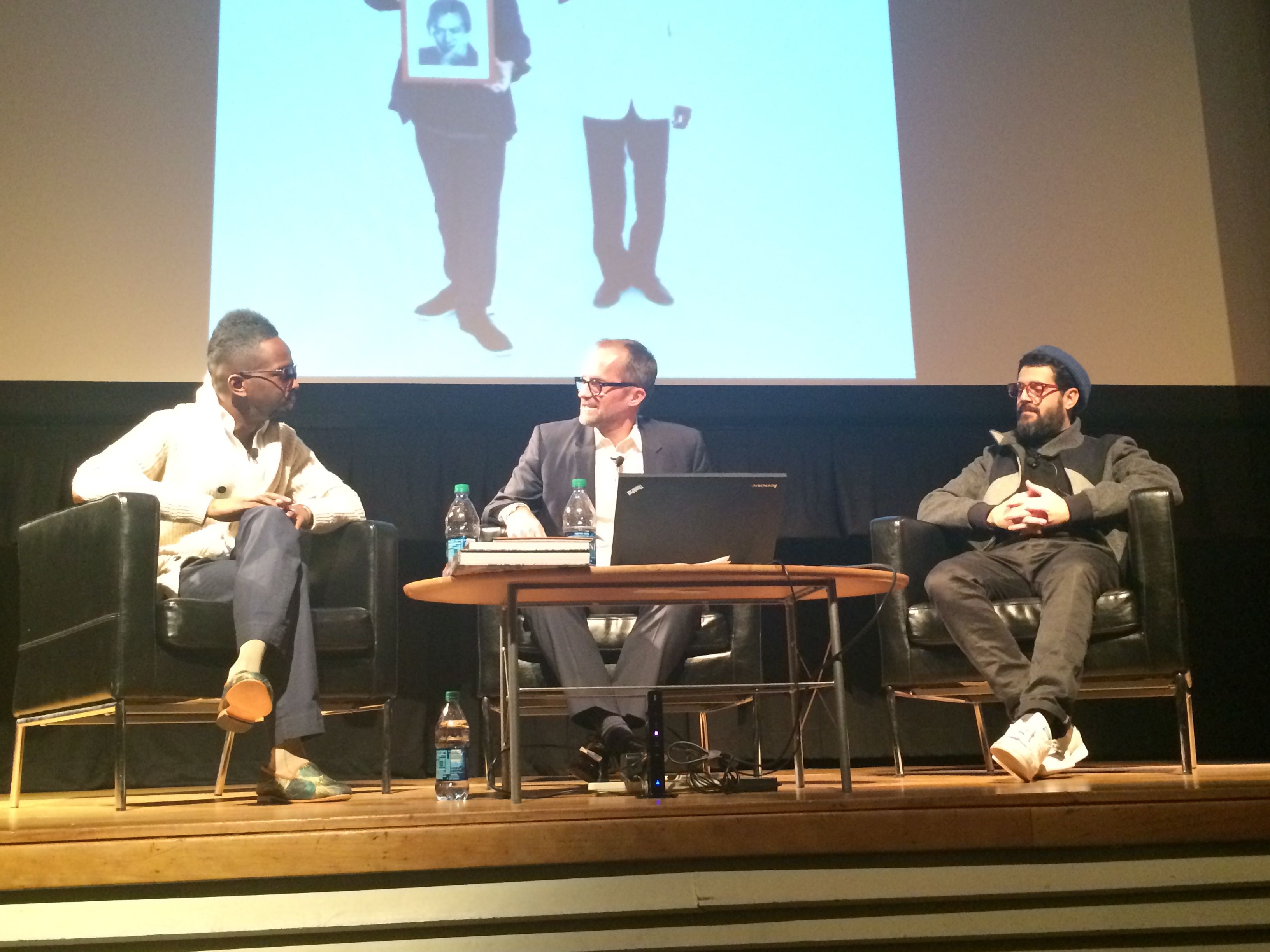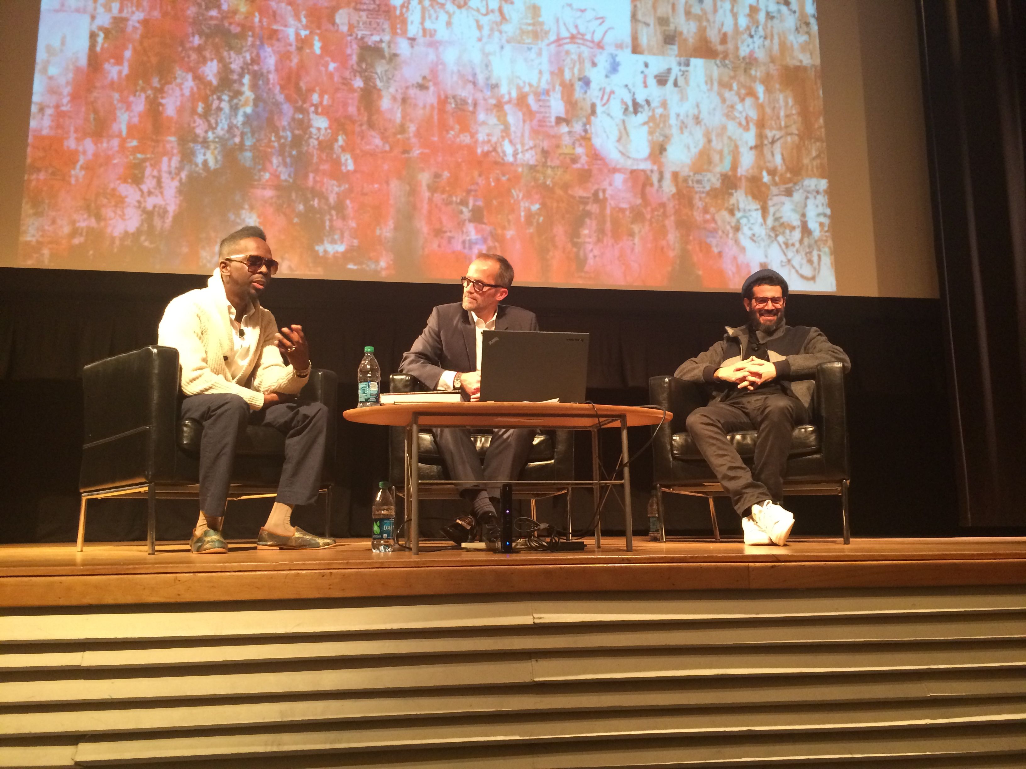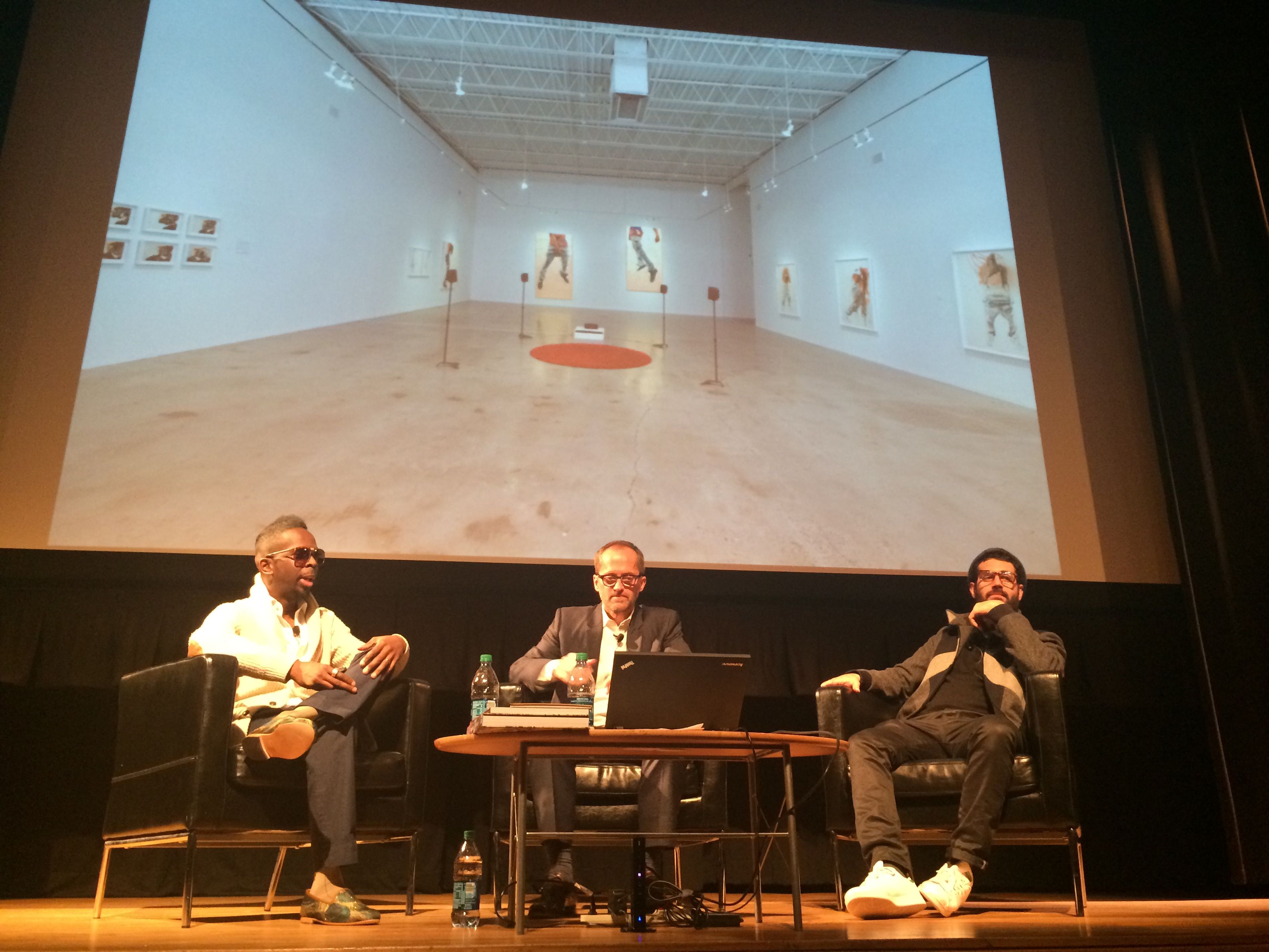 Fahamu, Michael and Jose with image of Fahamu’s recent MOCA exhibition
