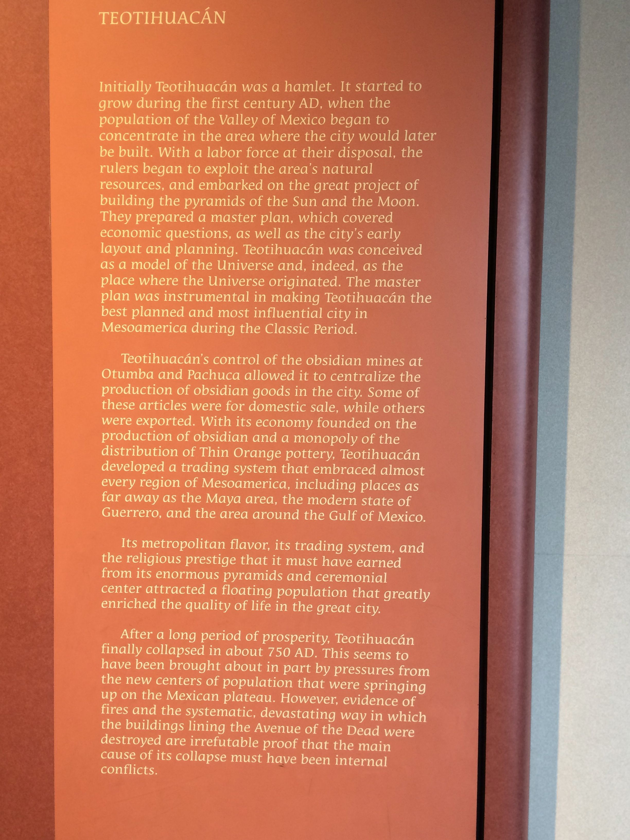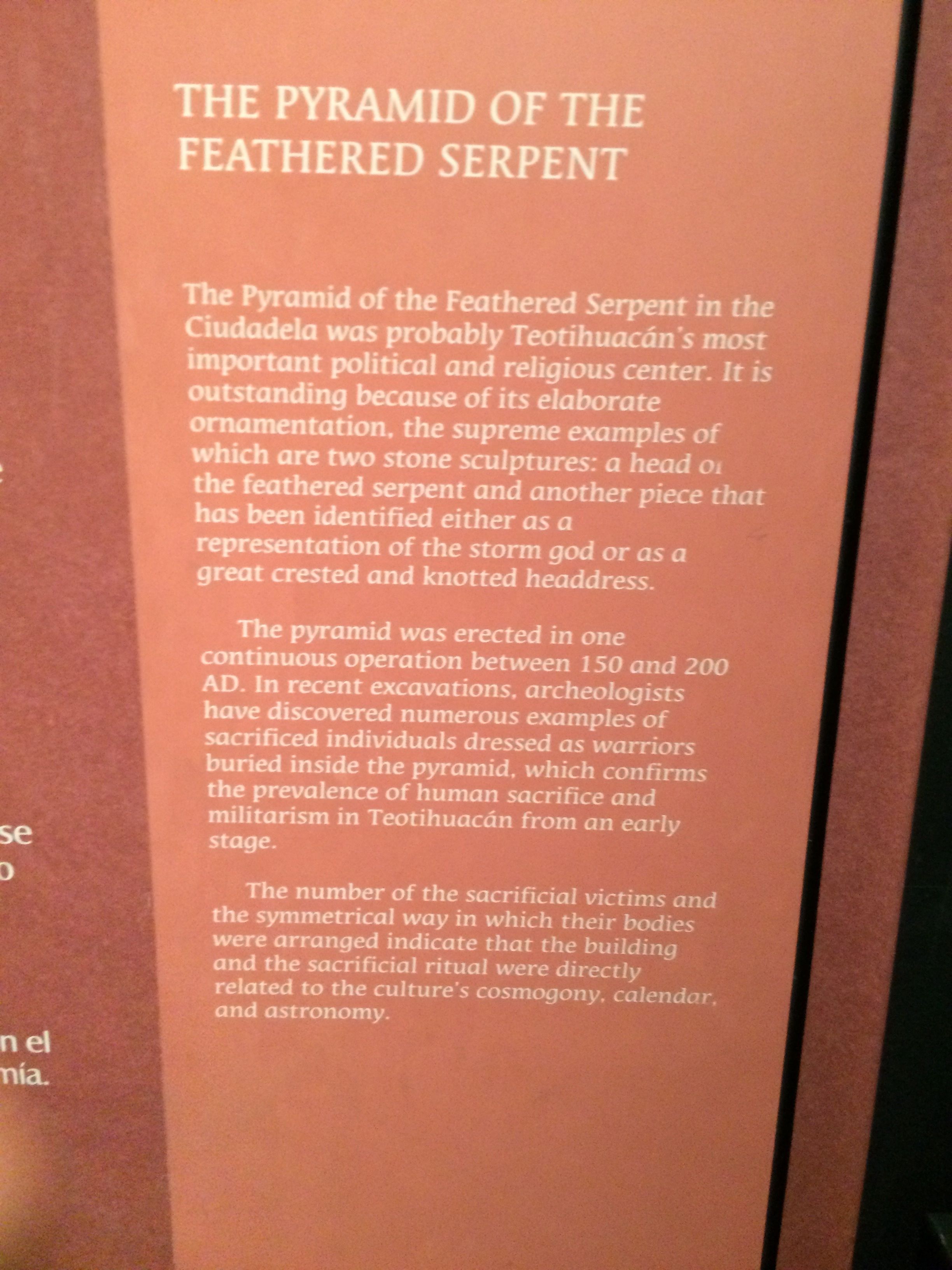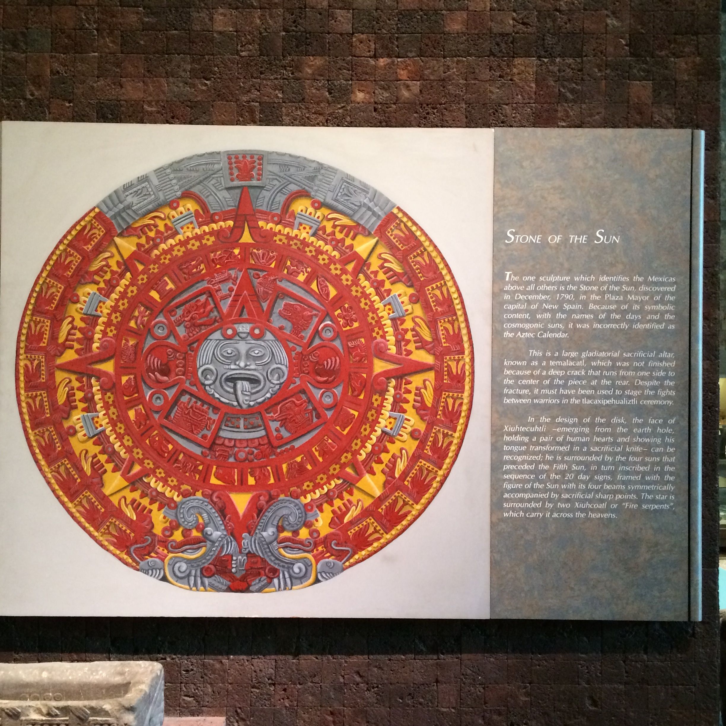 The Coyolxauhqui monolith discovery in 1978, enabled the archaeologists to find the exact place where the pyramid stood, since the Huitzilopochtli myth tells that he threw his sister down from Coatepec mountain. The archaeological excavations of the Coyolxauhqui monolith that took place between 1978 and 1982 on the site of what was once the Main Temple of Mexica peoples shows . The museum recreates the duality of life and death, water and war, agriculture and tribute, symbols of Tlaloc and Huitzilopachtil, deities to whom the Main Temple of Tenochititlan was dedicated. The collection shows the political, military and aesthetic relevance of the city that dominated Mesoamerica before the Spaniards arrived.
