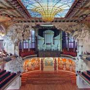 The Concert Auditorium – one of the most distinctive in the world – is for more than hundred years the privileged setting for the musical life, both national and international, of the city of Barcelona. It has hosted world premieres and iit is a landmark symphonic and choral music. Dominated by the organ over the stage and with a central skylightportraying the sun, the auditorium is filled with natural light. A mystical, paradoxical hall, packed with figures like the muses which surround the stage, a bust of Anselm Clavé on one side and Beethoven on the other, and natural motifs, including flowers, palms or fruits.