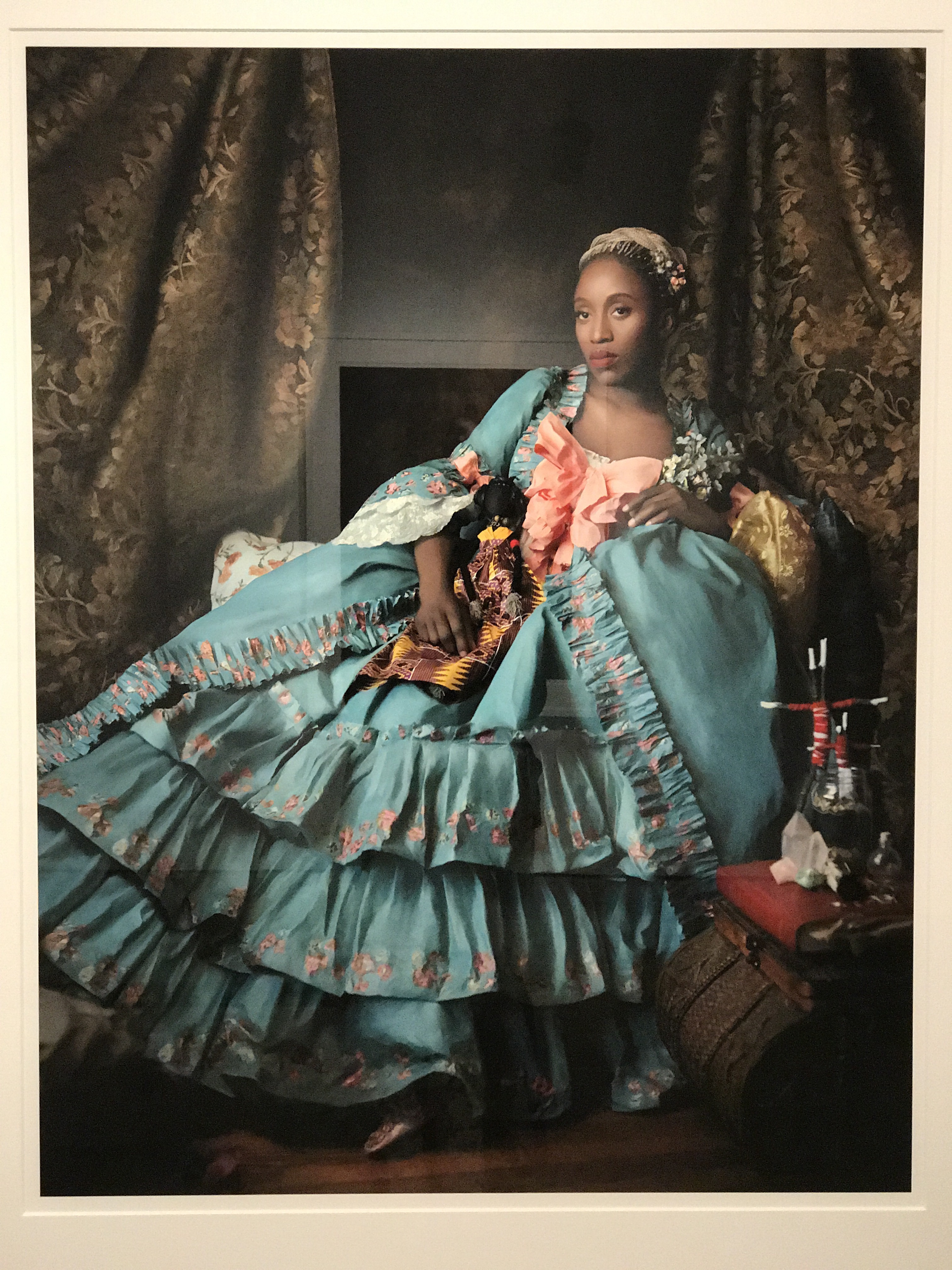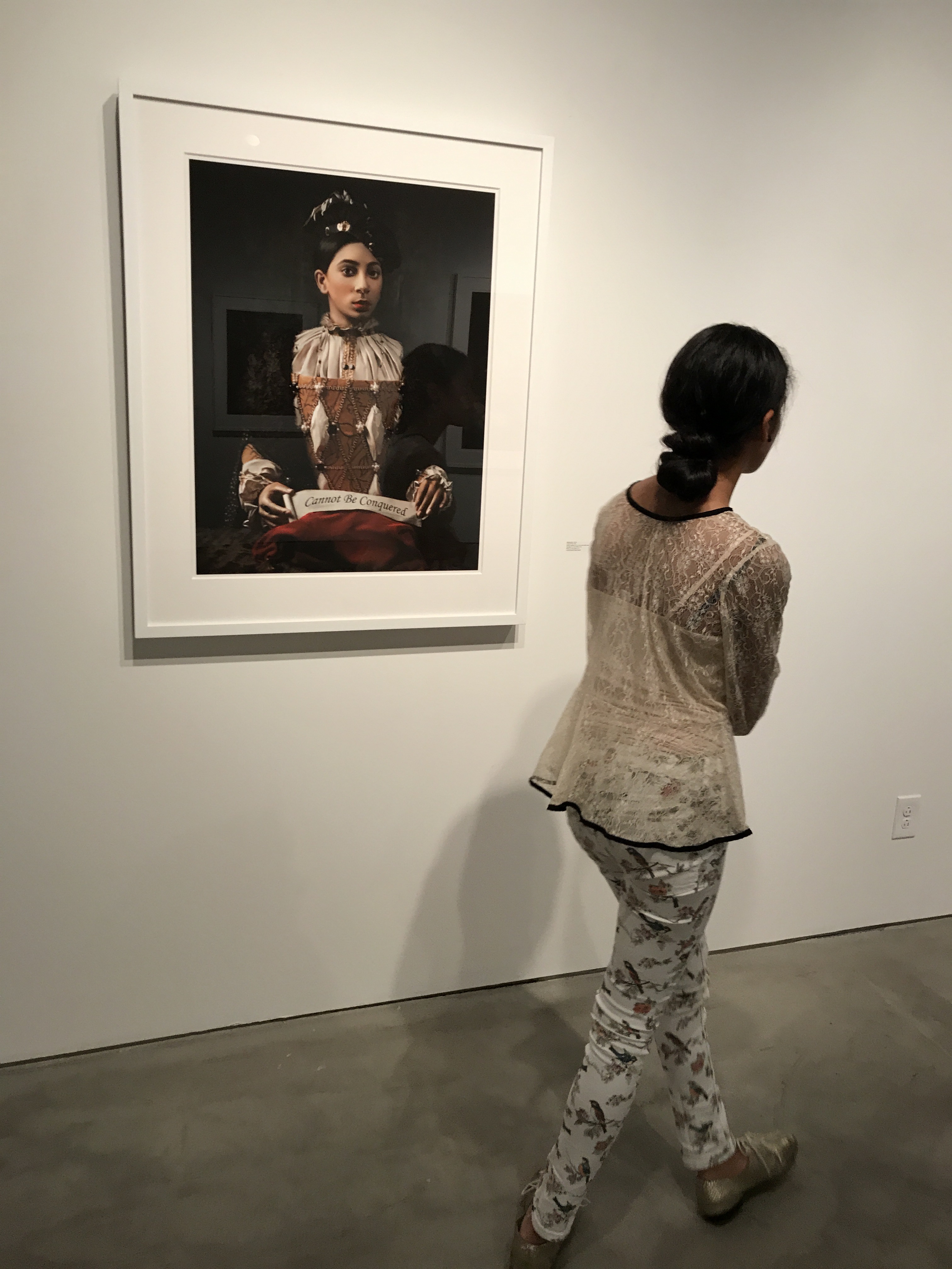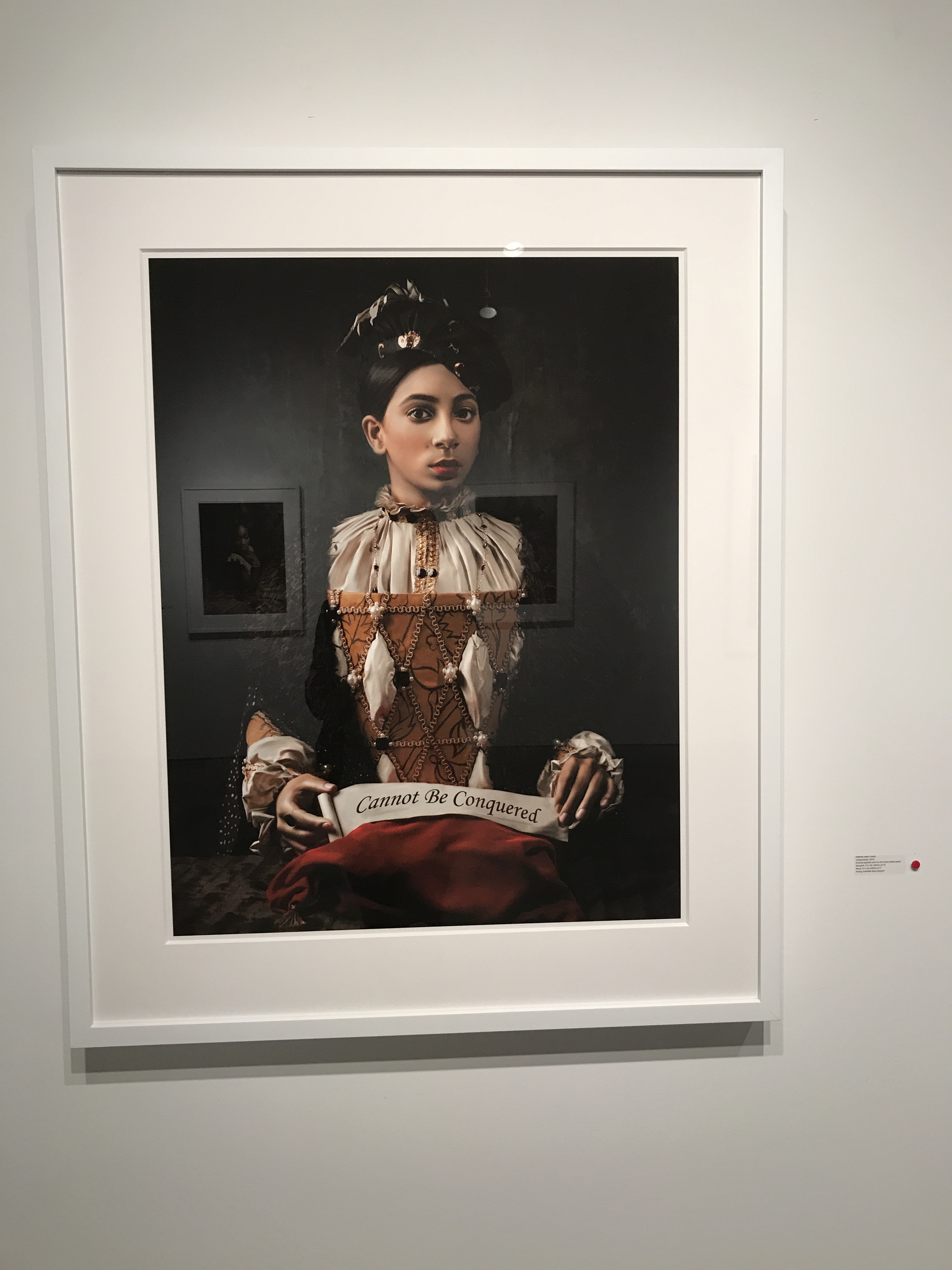 Fabiola Jean-Louis’s most recent series, Rewriting History, is an inquiry into social change, asking how much has society really changed since the beginning of slavery? In this haunting photographic essay, Jean-Louis has created paper sculptures styled to mimic garments worn by female European nobility between the 15th – 19th centuries. The series speaks to the shocking treatment of Blacks throughout history and the trauma inflicted on their bodies as juxtaposed with the abstract idea of Black freedom. Simultaneously, it engages with a vision of the future – one of hope, strength, resilience, and beauty. The materials used for the paper gown sculptures are transformed in a way that allows her to represent layers of time and the events of the past as they intrude upon the present. Through the materials, she suggests that although we cannot change the past, we can act to change the present as we activate the memories, visions, and legacies of our ancestors.